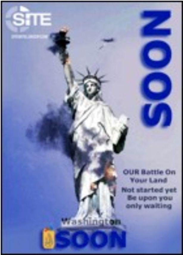 Η τρομοκρατική οργάνωση έδωσε στη δημοσιότητα φωτογραφία που απεικονίζει το Άγαλμα της Ελευθερίας να βομβαρδίζεται, ενώ η λεζάντα της εικόνας αναγράφει: «Σύντομα. Ουάσιγκτον. Η μάχη μας στα εδάφη σας δεν έχει ακόμα ξεκινήσει. Να αναμένετε».