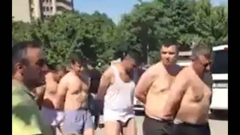 Στο βίντεο που δημοσιεύεται στα μέσα κοινωνικής δικτύωσης φαίνεται ομάδα στρατιωτικών να διαπομπεύεται σε δημόσια θέα.