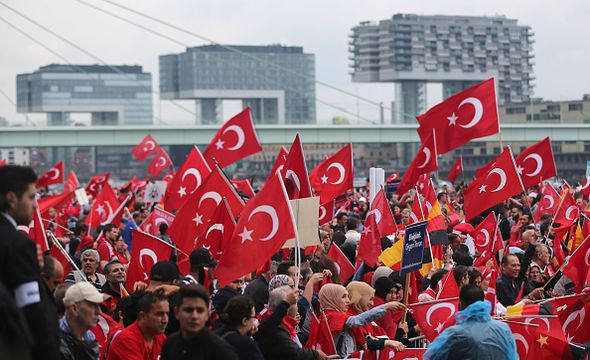 Η κεντρική εκδήλωση υπέρ του Ταγίπ Ερντογάν ξεκίνησε, όπως είχε προγραμματιστεί, με την ανάκρουση διαδοχικά του τουρκικού και του γερμανικού εθνικού ύμνου και τηρήθηκε ενός λεπτού σιγή στη μνήμη των θυμάτων της απόπειρας πραξικοπήματος στην Τουρκία και των επιθέσεων στο Παρίσι, το Μόναχο, την Άγκυρα και τη Νίκαια. Σε όλες τις ομιλίες πάντως υπάρχουν αιχμές εναντίον των Γερμανών πολιτικών και των τοποθετήσεών τους το τελευταίο διάστημα στην Τουρκία, ενώ εκ των κεντρικών συνθημάτων που ακούγονται είναι αυτό υπέρ της επαναφοράς της θανατικής ποινής στην Τουρκία.