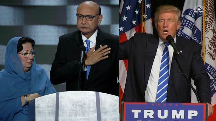 Στην ομιλία του στο συνέδριο των Δημοκρατικών ο Κιζίρ Χαν μίλησε για τη θυσία του γιου του και άσκησε κριτική στον Τραμπ για την εξαγγελία του σχετικά με την προσωρινή απαγόρευση της εισόδου των μουσουλμάνων στις ΗΠΑ. Ο Χαν κρατούσε ένα αντίγραφο του συντάγματος των ΗΠΑ και συνέστησε στον Τραμπ να το διαβάσει. Από τη στιγμή εκείνη ο Τραμπ παραπονέθηκε ότι δέθηκε τη “μοχθηρή επίθεση” της οικογένειας Χαν.