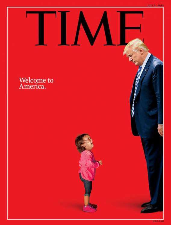 Το Time έκανε εξώφυλλο το παιδί που κλαίει με λυγμούς, μαζί με τον Ντόναλντ Τραμπ. Ο Αμερικανός πρόεδρος βλέπει το παιδί και του λέει «καλωσόρισες στην Αμερική».