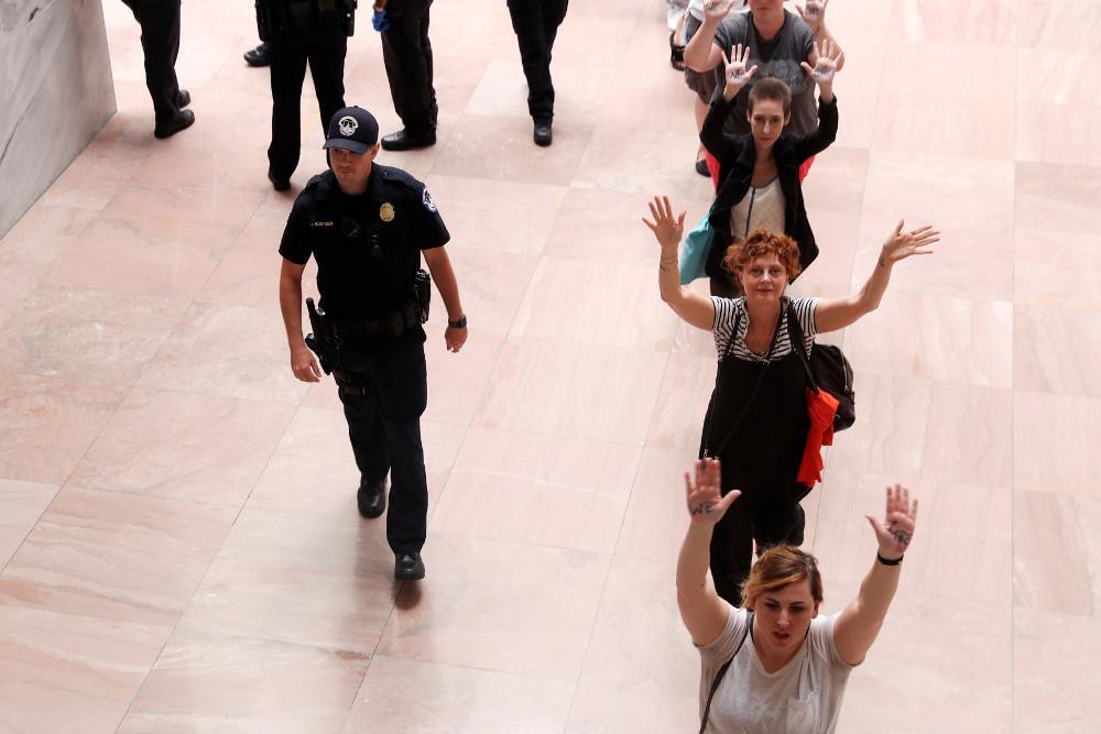 Αξίζει να σημειωθεί πως η ηθοποιός συνελήφθη ανάμεσα σε 600 άλλες γυναίκες που πραγματοποιούσαν καθιστική διαμαρτυρία έξω από το κτίριο της Γερουσίας, στην Ουάσιγκτον.
