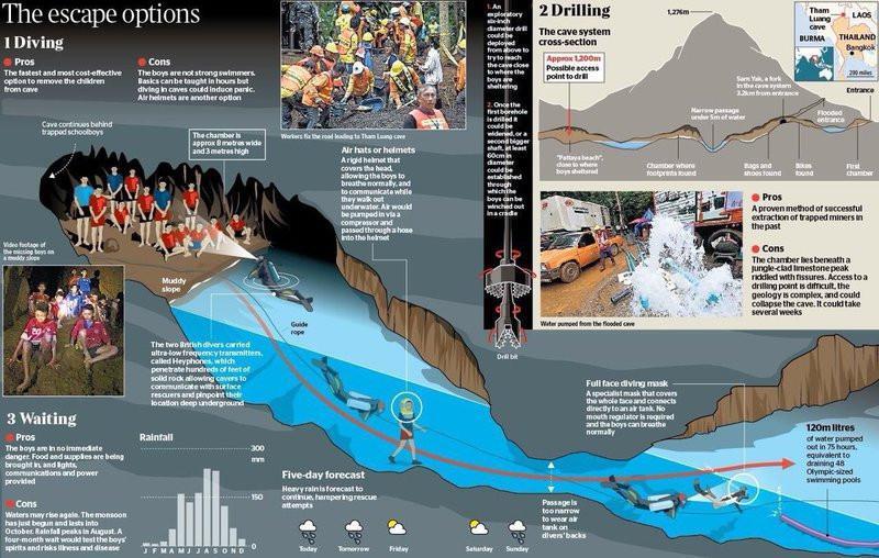 «Δίνεται μάχη με τον χρόνο επειδή την Κυριακή θα έχουμε ισχυρές βροχοπτώσεις, αλλά παραμένουμε θετικοί», δήλωσε ο Βέλγος δύτης Ben Reymenants στην εφημερίδα HLN. Ο ίδιος ισχυρίστηκε πως η επιχείρηση θα ξεκινήσει απόψε και τα παιδιά θα απεγκλωβίζονται δύο-δύο.