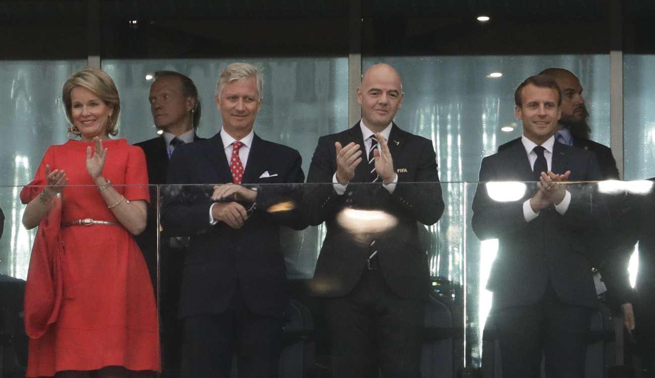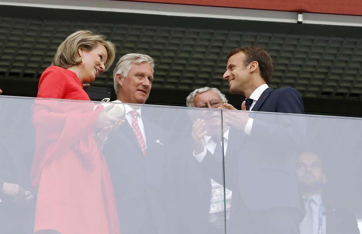 Ο Γάλλος πρόεδρος εμφανίστηκε χαμογελαστός στο γήπεδο της Αγίας Πετρούπολης όπου διεξάγεται ο αγώνας μεταξύ Γαλλίας και Βελγίου για μια θέση στον τελικό.