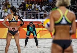 Το θέμα δεν θα είχε καν απασχολήσει την κοινή γνώμη αν στο παιγνίδι που κυριαρχεί το μπικίνι οι Αιγύπτιες δεν φορούσαν μακρύ παντελόνι και μαντίλα .