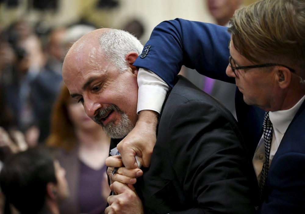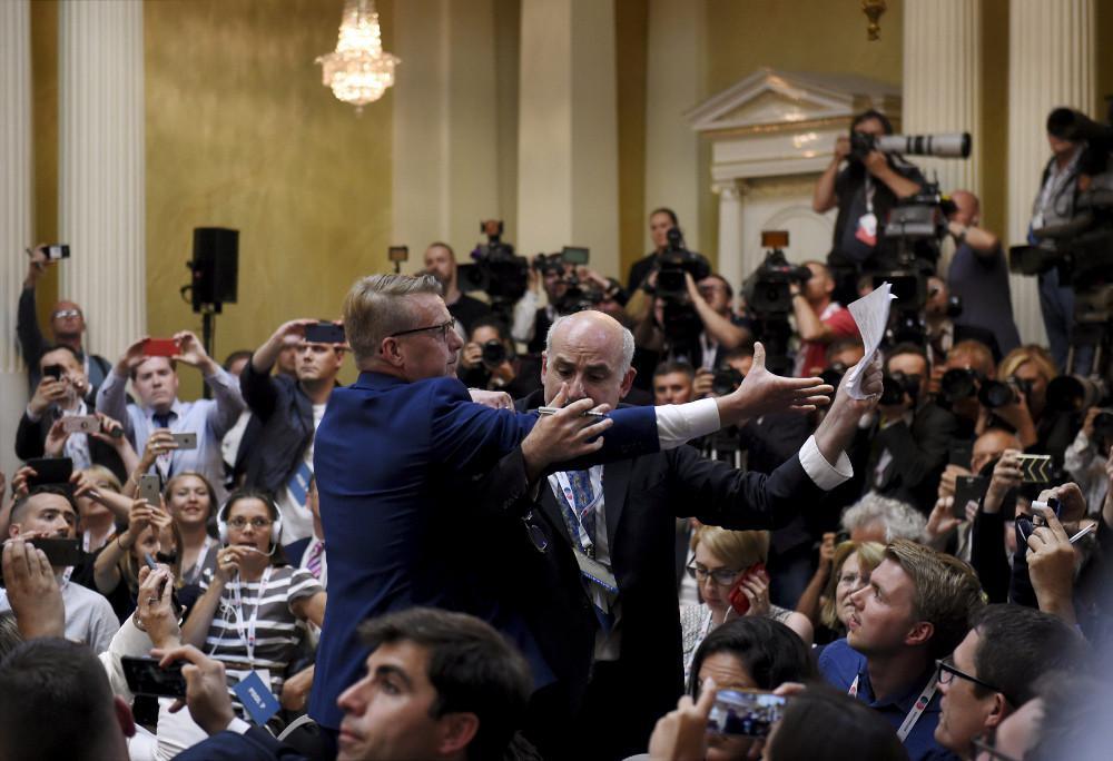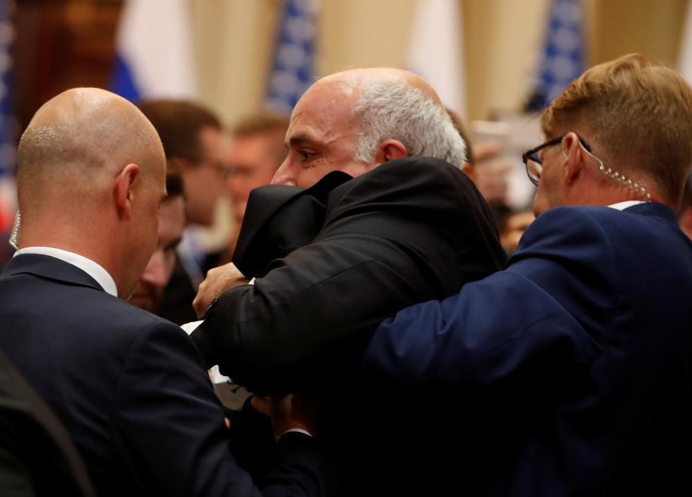 Οι άνδρες των υπηρεσιών ασφαλείας απομάκρυναν έναν διαδηλωτή από την αίθουσα καθώς λίγα πριν μπουν στην αίθουσα οι Πρόεδροι της Ρωσίας και των ΗΠΑ Ο διαδηλωτής ύψωσε ένα πλακάτ που έγραφε «Συνθήκη για την απαγόρευση των πυρηνικών», με την επέμβαση των ανδρών ασφαλείας να είναι άμεση.