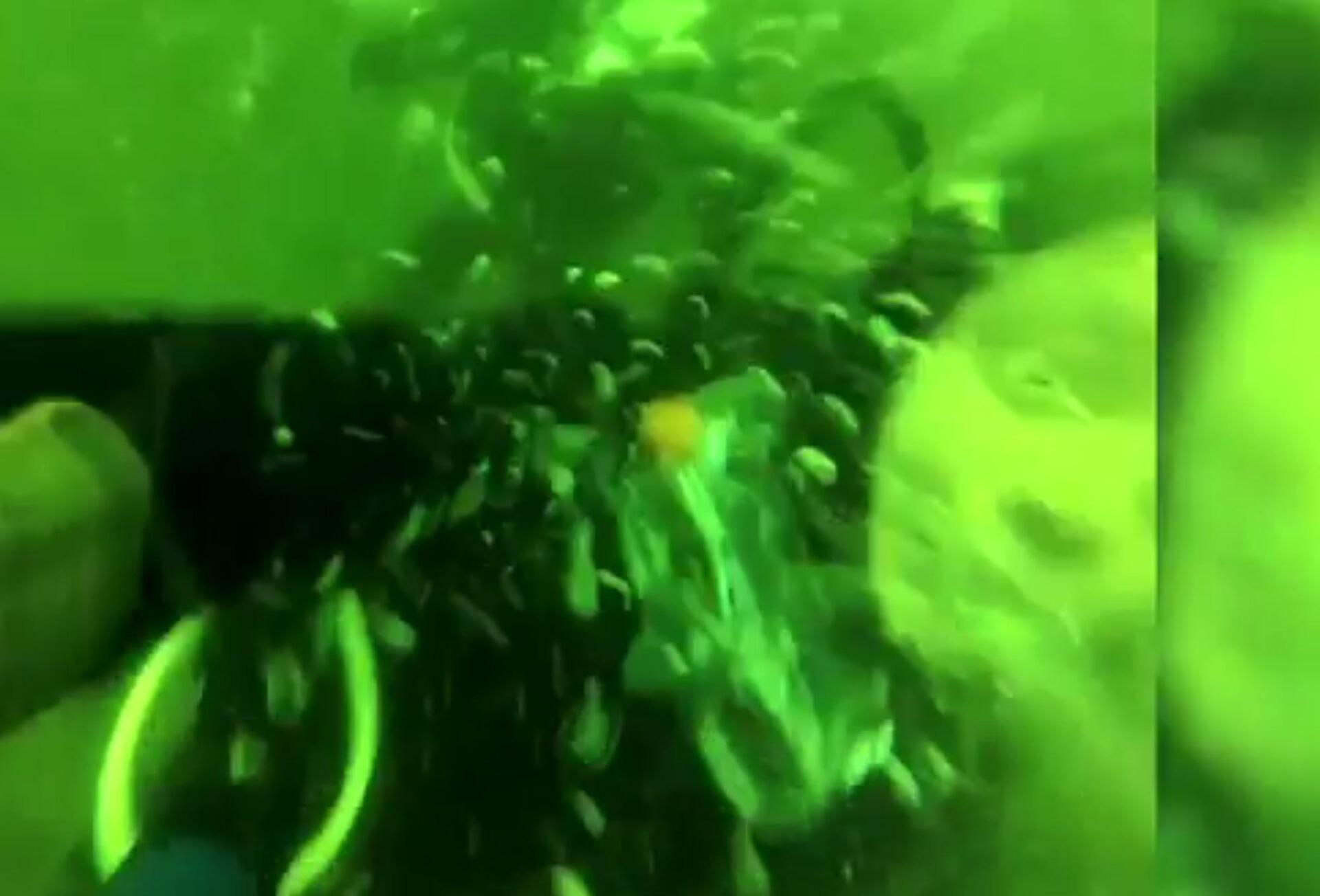 Το περιστατικό συνέβη στο Κέιπ Τάουν της Νότιας Αφρικής κατά τη διάρκεια μαθημάτων κατάδυσης. Στο βίντεο που έχει τραβήξει ο εκπαιδευτής, φαίνεται ο ίδιος να κάνει νοήματα στην ομάδα του για να δει ότι όλα πάνε καλά. Και ενώ φαίνεται ότι δεν συμβαίνει κάτι ανησυχητικό στα δεξιά του μία γυναίκα αρχίζει να κινείται περίεργα.