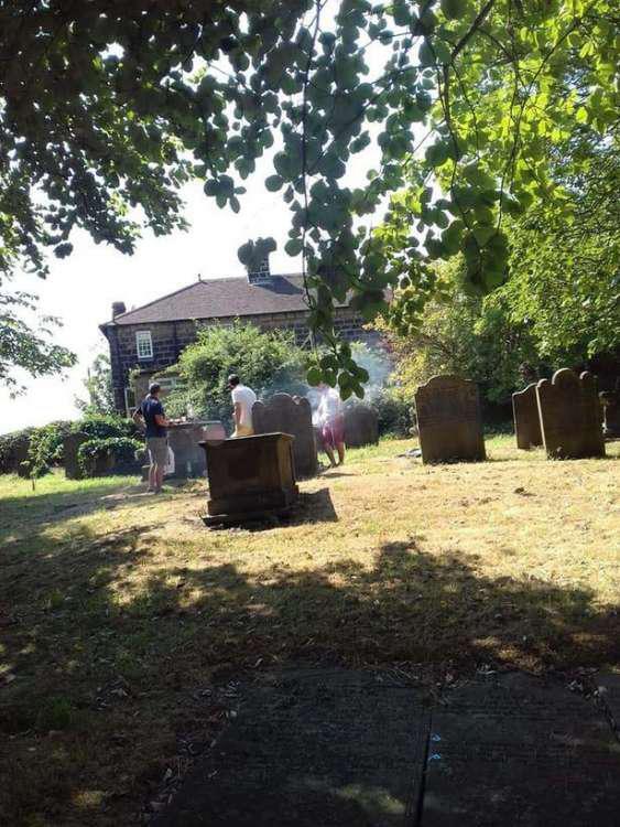 Άνδρες, γυναίκες και παιδιά κάθονταν και απολάμβαναν τον ήλιο ενώ έψηναν κρέατα στο νεκροταφείο. Μπροστά στο ανορθόδοξο θέαμα βρέθηκε ένας περαστικός που έκανε βόλτα στο ανατολικό Γιορκσάιρ με τη σύζυγό του.