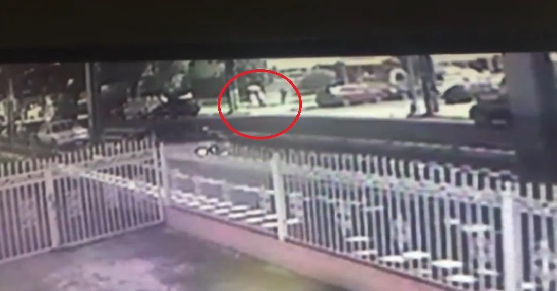 Στο βίντεο φαίνονται δύο άνδρες να περπατούν στο δρόμο και ένας τρίτος να τους πλησιάζει από πίσω και να τους πυροβολεί.