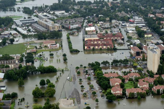 Φωτογραφίες που τραβήχτηκαν το απόγευμα της Δευτέρας από ελικόπτερο των αρχών του Μπατόν Ρουζ κατέγραψαν ολόκληρες περιοχές να βρίσκονται κάτω από το νερό και δρόμους, δάση και κατοικημένες συνοικίες να έχουν καλυφθεί από βουνά λάσπης.