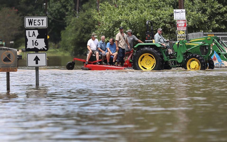 Στις νότιες ΗΠΑ, ο κυβερνήτης της Λουιζιάνας Τζον Μπελ Έντουαρντς έκανε λόγο για πλημμύρες «δίχως προηγούμενο» κατά τη διάρκεια των οποίων 30.000 άνθρωποι διασώθηκαν. Οι 14.000 από αυτούς βρήκαν κατάλυμα σε καταφύγια, κυρίως στο Μπατόν Ρουζ και τα προάστιά του.
