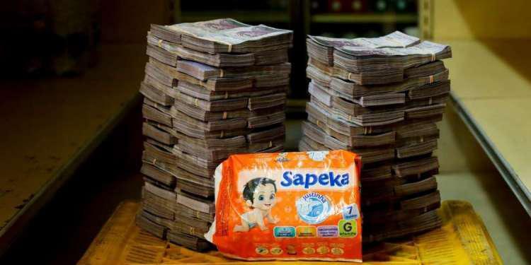 Οι κάτοικοι της χώρας προκειμένου να πληρώσουν είδη πρώτης ανάγκης όπως ρύζι, κοτόπουλο, μακαρόνια και χαρτιά υγείας θα πρέπει να δώσουν για αντίτιμο ένα τσουβάλι χρήματα που πλέον δεν έχουν καμία αξία στην χώρα.