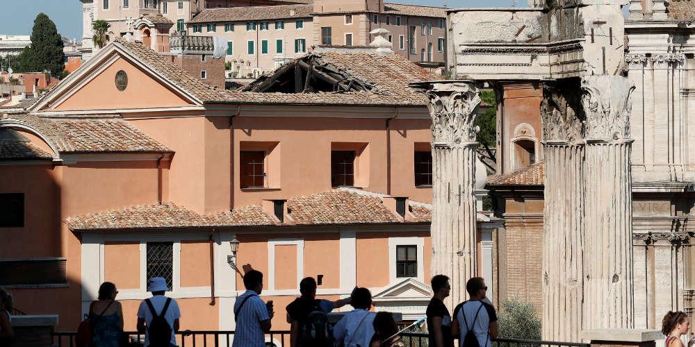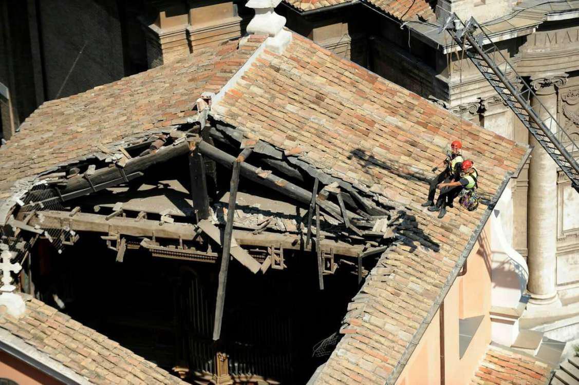Ξύλινα δοκάρια και κεραμικά πλακίδια έπεσαν στο πάτωμα της εκκλησίας και ένα δοκάρι διαπέρασε το πάτωμα και τη θολωτή οροφή ενός παρεκκλησίου που βρισκόταν από κάτω, είπε ο εκπρόσωπος της πυροσβεστικής Λουίτζι Λιόλι λίγη ώρα αφού επιθεώρησε τη ζημιά.