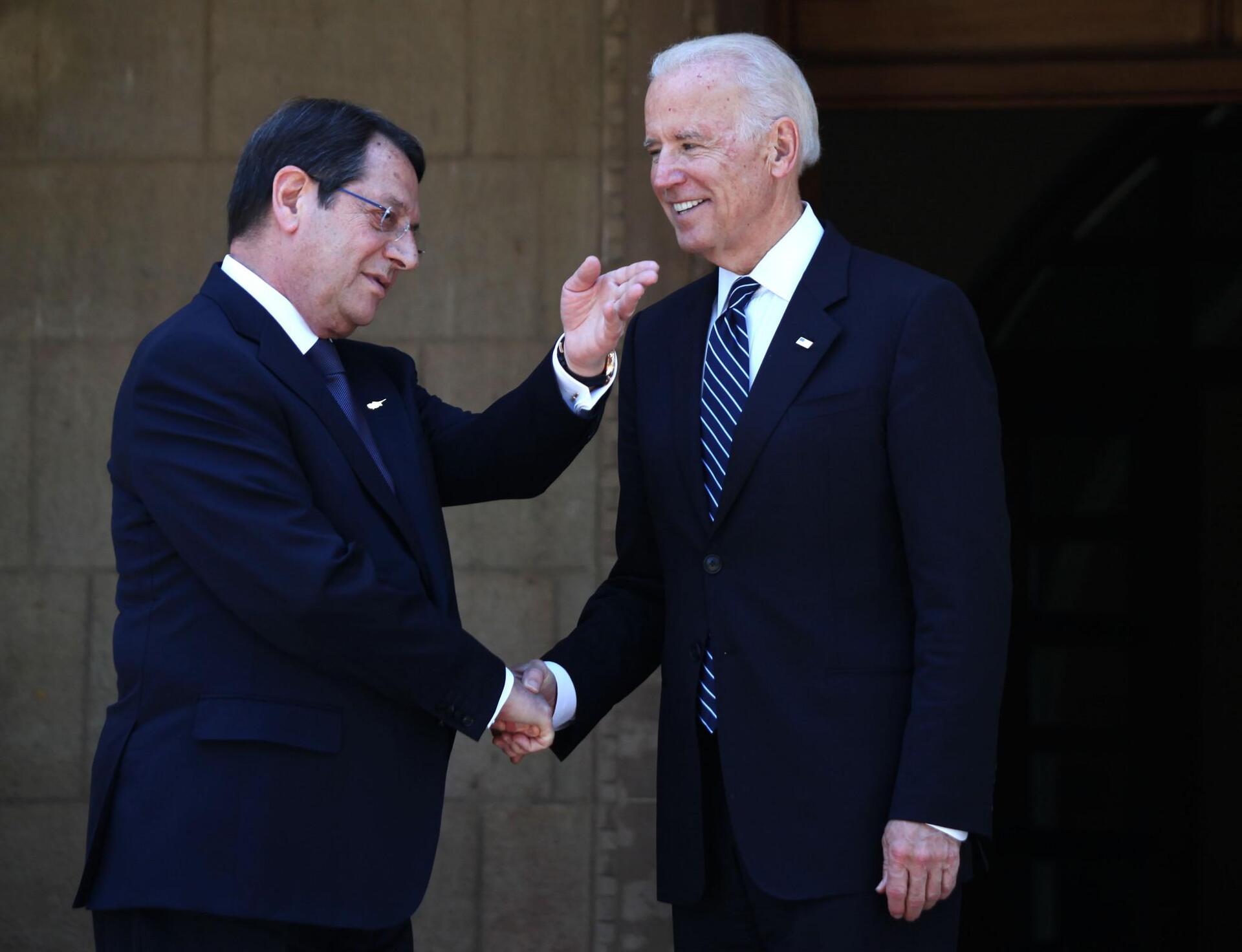 Στις συνομιλίες συζητήθηκε η παρούσα φάση του Κυπριακού. Σύμφωνα με την ανακοίνωση, ο Αμερικανός Αντιπρόεδρος εξέφρασε την ελπίδα ότι οι ηγέτες των δύο κοινοτήτων θα μπορέσουν να επιτύχουν περαιτέρω σημαντική πρόοδο στις συνομιλίες τους και διατύπωσε την εκτίμηση ότι μπορεί να επιτευχθεί συμφωνία ως τα τέλη του 2016