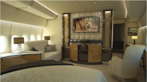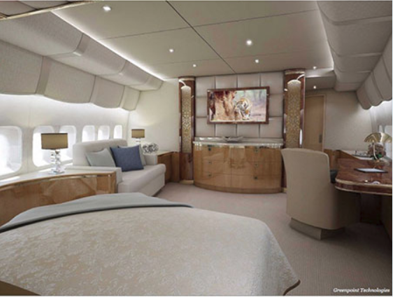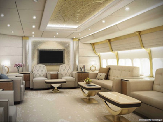 Είτε ο Τούρκος πρόεδρος πλήρωσε για την αγορά του, είτε του το προσέφερε δώρο ο σεΐχης,το αεροσκάφος μοιάζει πράγματι με «ιπτάμενο παλάτι» καθώς διαθέτει, εκτός των επτά υπνοδωματίων, σαλόνια, γραφείο, μια τεράστια τραπεζαρία και αίθουσα συσκέψεων.