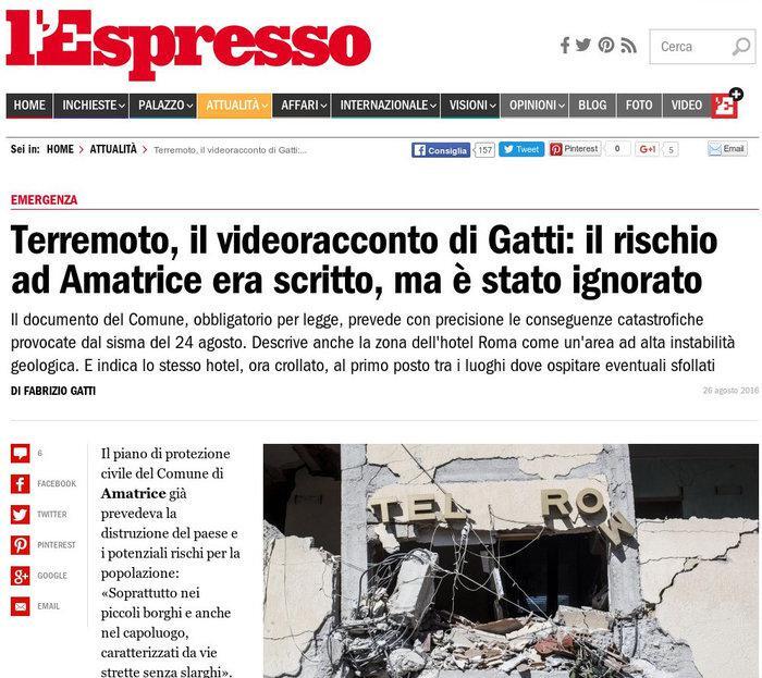 «Είναι όλα γραμμένα στη σελίδα 18 του εγγράφου που κάθε δημοτική αρχή πρέπει να προετοιμαστεί. Ήταν γνωστοί οι κίνδυνοι. Και, όπως είδαμε με τον σεισμό της 24ης Αυγούστου, δεν έγινε τίποτα για να αποφευχθούν» αναφέρει ο συντάκτης του άρθρου.