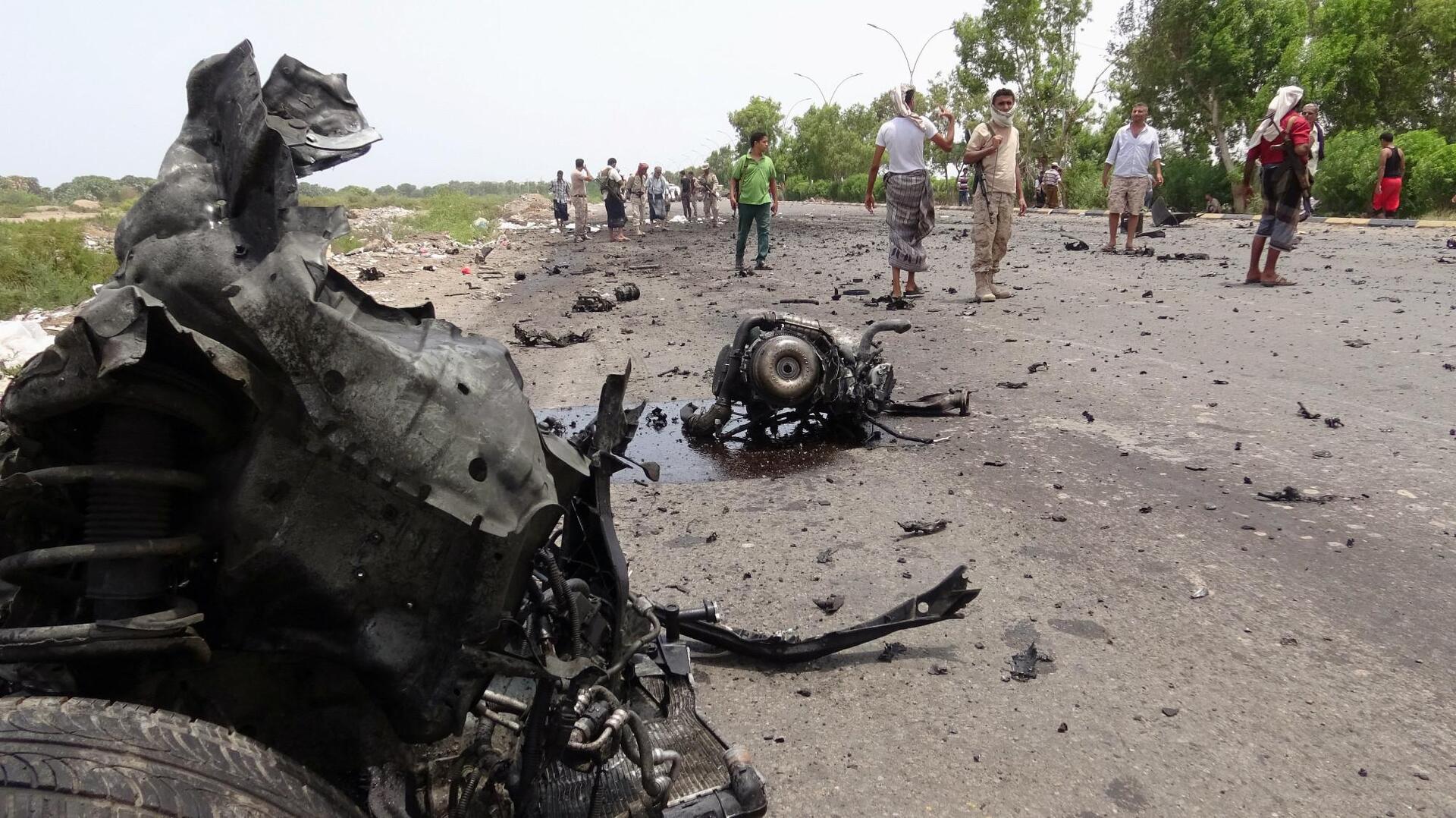 Αυτόπτες μάρτυρες ανέφεραν πως ο καμικάζι αυτοκτονίας οδήγησε το αυτοκίνητο μέσα σε κτήριο στα βόρεια της πόλης, το οποίο χρησιμοποιείται από τη Λαϊκή Αντίσταση, τοπική ένοπλη δύναμη που συνέβαλε στον διωγμό των Χούτι από την πόλη.