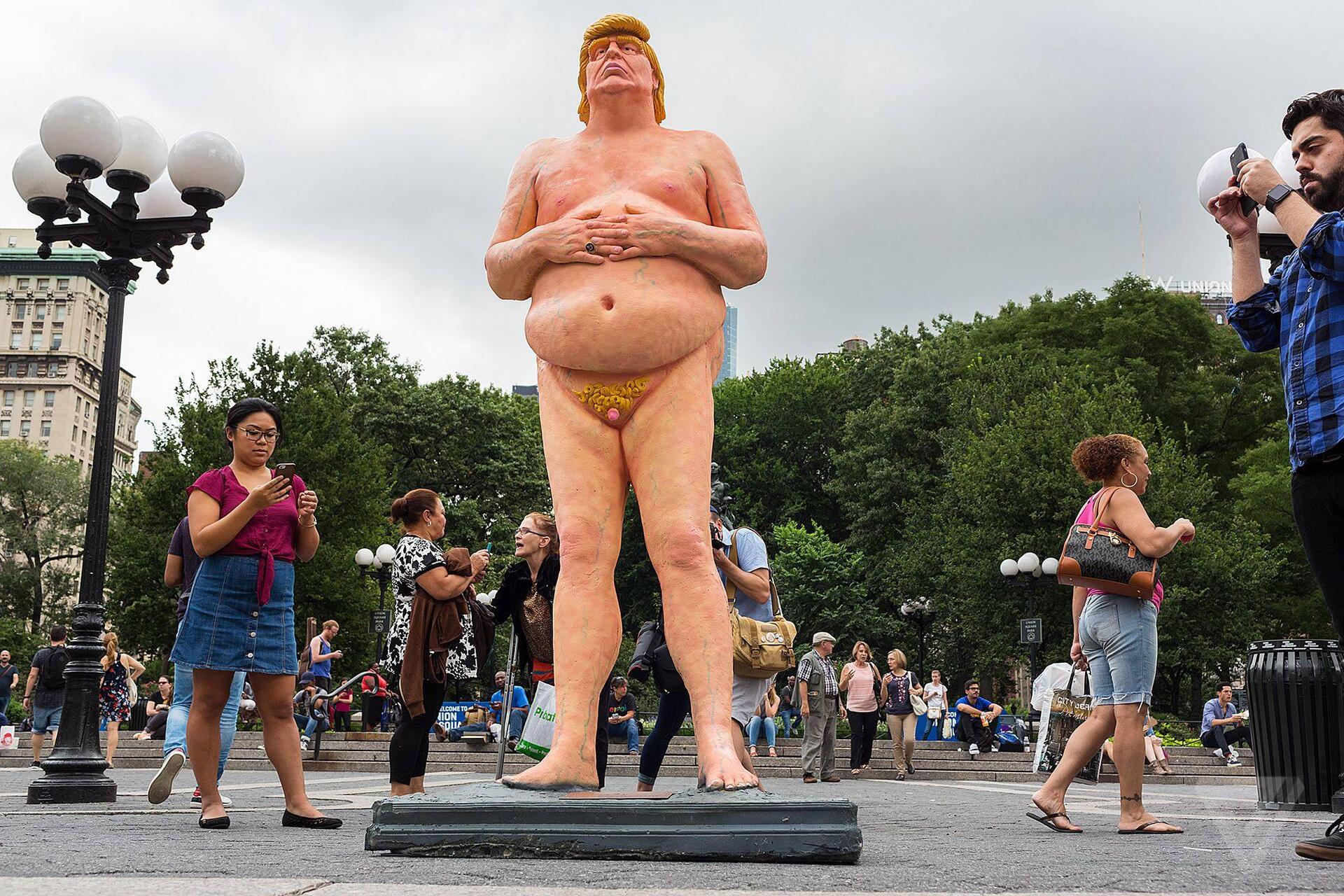 Το άγαλμα είναι ένα από τα πέντε συνολικά που έκαναν αιφνιδίως την εμφάνισή τους σε δημόσιους χώρους στη Νέα Υόρκη και άλλες τέσσερις πόλεις των ΗΠΑ, νωρίτερα τον Αύγουστο. Έχουν πορτοκαλοροζ απόχρωση και εικονίζουν τον Τραμπ με τεράστια κοιλιά, μικρά δάχτυλα και σχεδόν ανύπαρκτα γεννητικά όργανα.