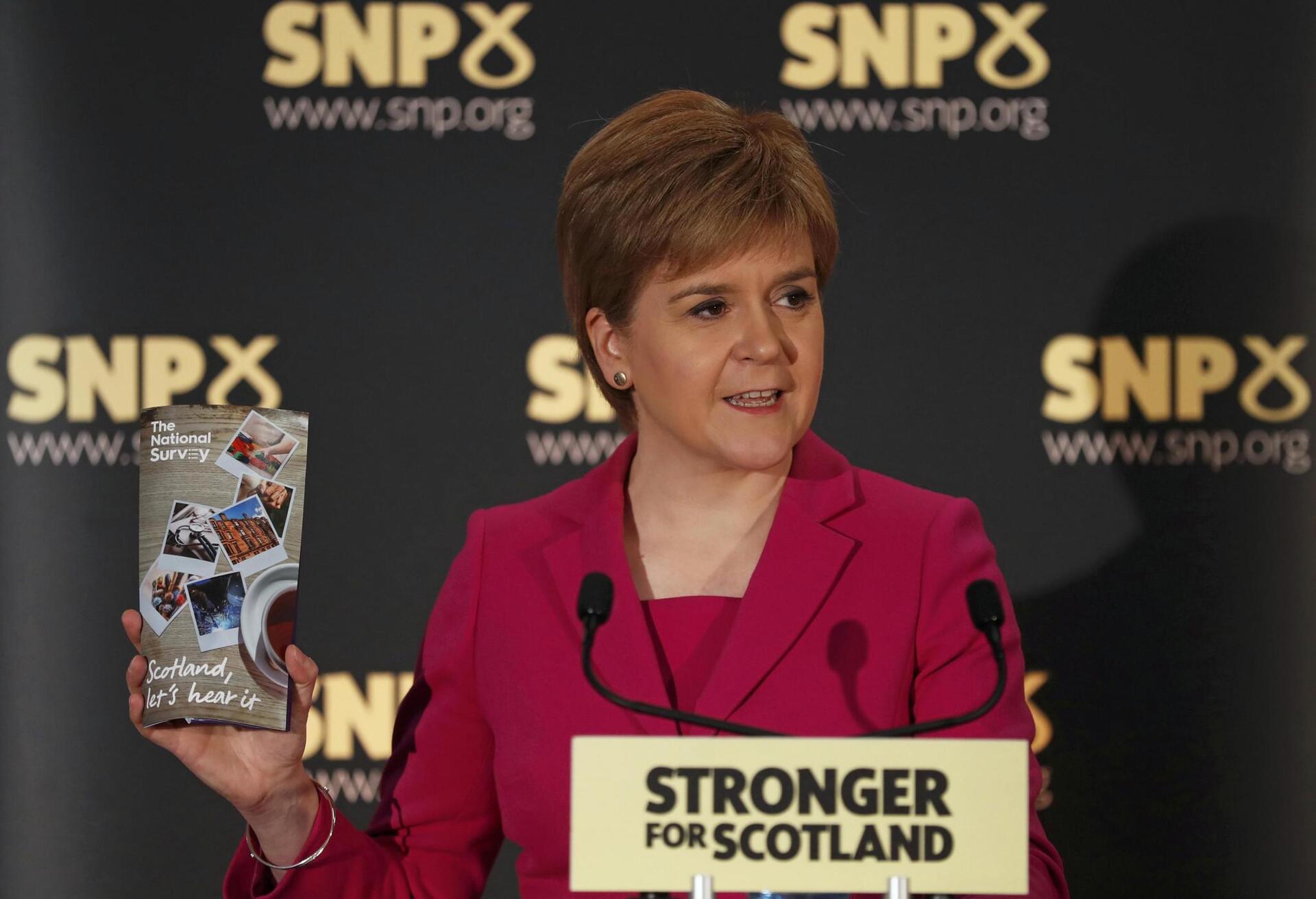 “Τα συμφέροντα της Σκωτίας απειλούνται”, δήλωσε σε ομιλία της στο Στέρλινγκ, έναν τόπο με συμβολική σημασία, καθώς ο Ουίλιαμ Ουάλας, ήρωας και σύμβολο της σκωτσέζικης ανεξαρτησίας, είχε κερδίσει εκεί το 1297 μια ιστορική μάχη εναντίον των Άγγλων.