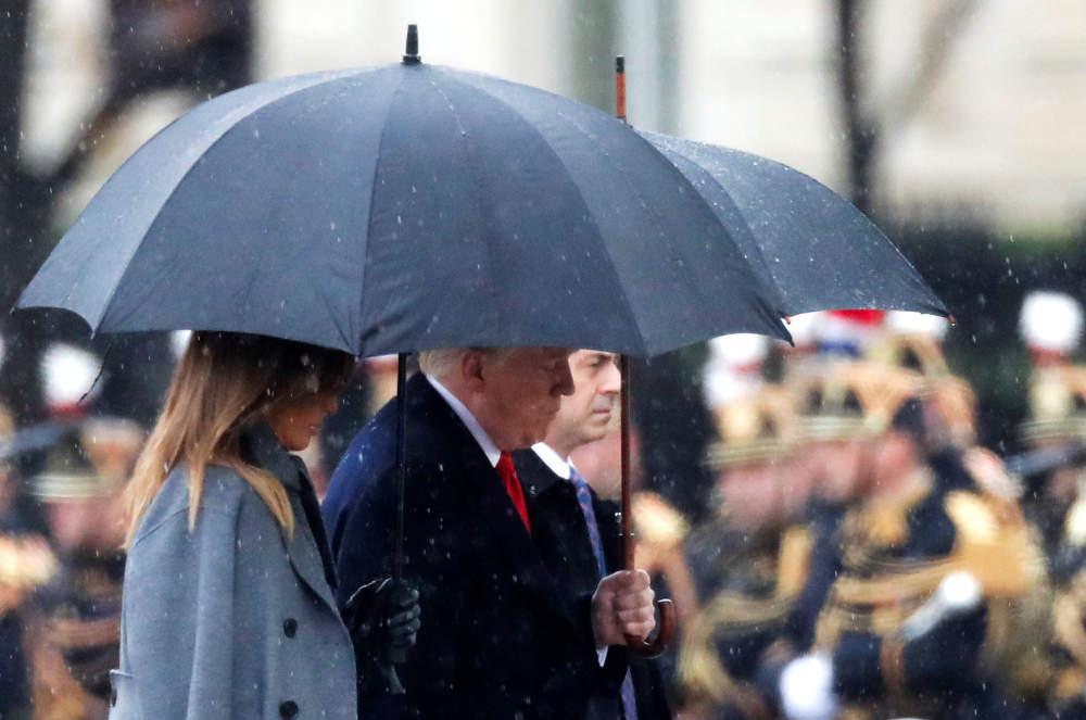 Να σημειωθεί ότι χθες ακύρωσε τη μετάβασή του στο αμερικανικό νεκροταφείο στο Μπουά Μπελό (Bois Belleau) λόγω κακοκαιρίας, θέμα για το οποίο έχει δεχθεί πολλές επικρίσεις από Αμερικανούς συμπολίτες του.