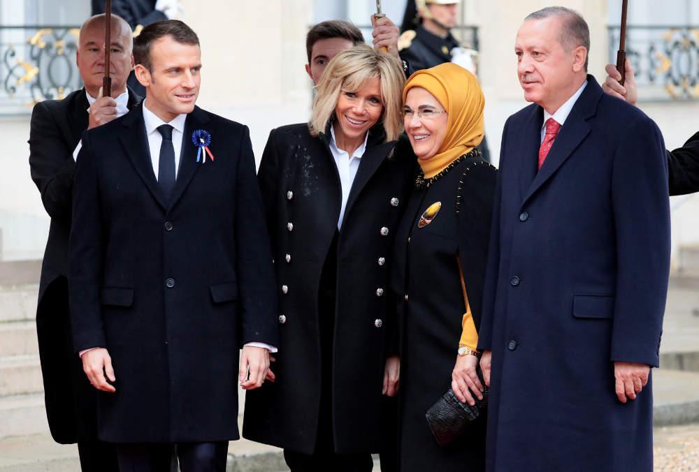Από νωρίς το πρωί (9:00 τοπική ώρα ) και από το κεφαλόσκαλο του προεδρικού Μεγάρου, ο Γάλλος πρόεδρος Εμανουέλ Μακρόν και η σύζυγός του Μπριζίτ υποδέχονται τον έναν μετά τον άλλο τους αρχηγούς κρατών και κυβερνήσεων, που έφθασαν στο Παρίσι για τις εκδηλώσεις της εκατονταετηρίδας.