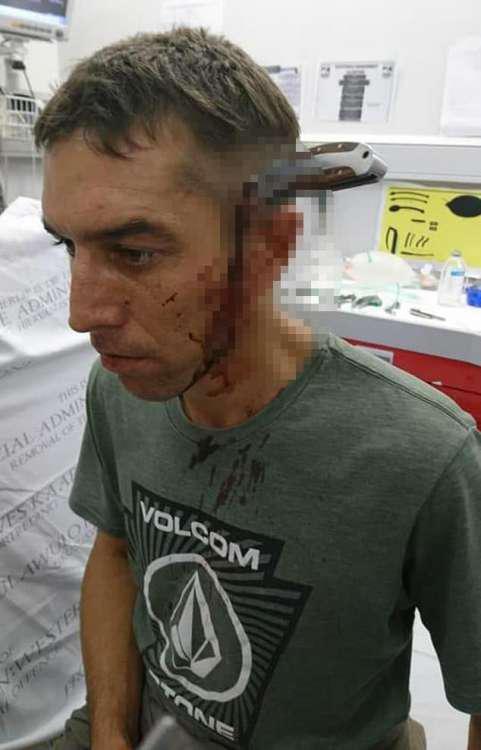 Ο 34χρονος Γουέιν δεν τα έχασε και αφού κατάφερε να τους ξεφύγει συνέχισε για 800 μέτρα με το ποδήλατο μέχρι να φτάσει στον γιατρό προκειμένου να σώσει την ζωή του με το μαχαίρι των 15 εκατοστών καρφωμένο στο κρανίο του!