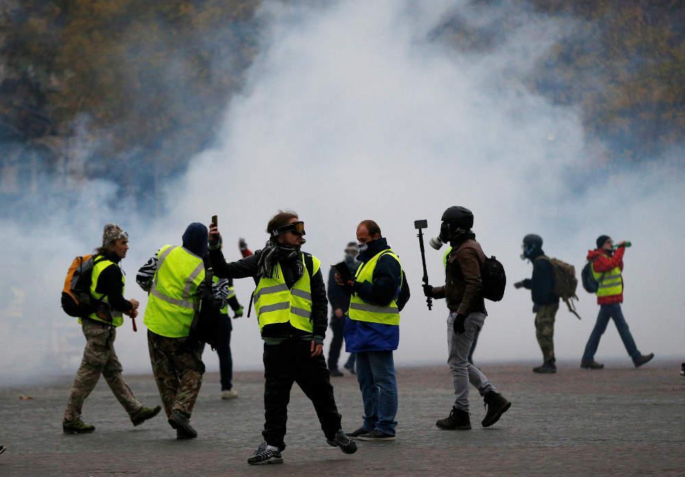Μετά την επιστροφή του από το G20 της Αργεντινής ο Μακρόν επισκέφθηκε χθες το μεσημέρι το βανδαλισμένο εθνικό μνημείο της Αψίδας του Θριάμβου, ευχαριστώντας τους αστυνομικούς και τους πυροσβέστες που το προστάτευσαν όσο μπορούσαν. Οι λιγοστοί περαστικοί ήταν μοιρασμένοι – άλλοι τον επευφήμησαν κι άλλοι του ζήτησαν να παραιτηθεί – όπως έκαναν η Μαρίν Λεπέν κι ο Ζαν-Λικ Μελανσόν κι έγραψαν με μαύρη μπογιά οι διαδηλωτές στην Αψίδα του Θριάμβου, τον Αγνωστο Στρατιώτη της Γαλλίας.