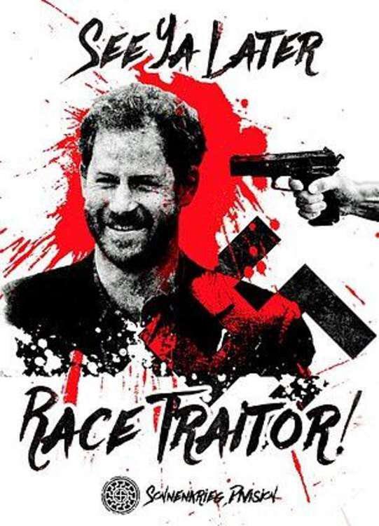 Η οργάνωσή των νεοναζί, που αποκαλείται Sonnenkrieg Division, ανάρτησε μια φωτογραφία του πρίγκιπα Χάρι δίπλα σε μια σβάστικα, μ’ ένα πιστόλι να του σημαδεύει τον κρόταφο και το σύνθημα: «Τα λέμε αργότερα, προδότη της φυλής!»