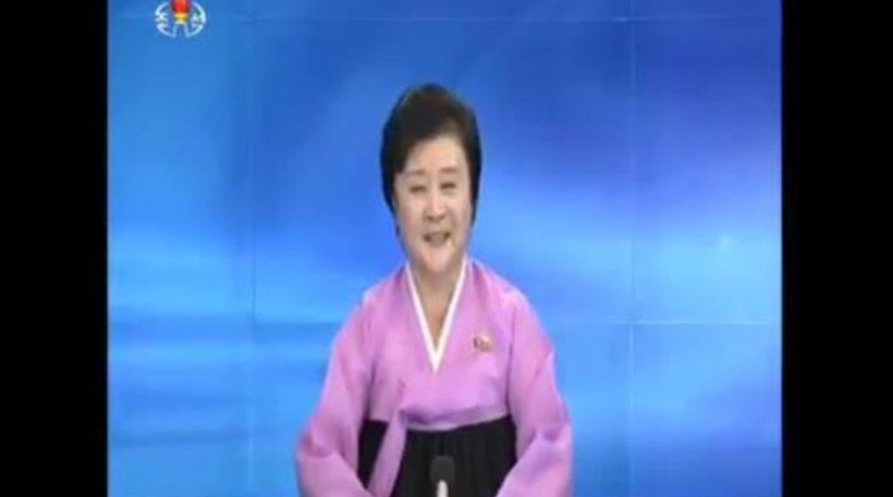 Και ποια καλύτερη στο ρόλο αυτό από τη Ρι Τσουν Χι, τη διάσημη πλέον παρουσιάστρια της βορειοκορεατικής τηλεόρασης, η οποία εμφανίστηκε με τη χαρακτηριστική παραδοσιακή φορεσιά -chima jeogori – της χώρας της για να εκφωνήσει την είδηση.