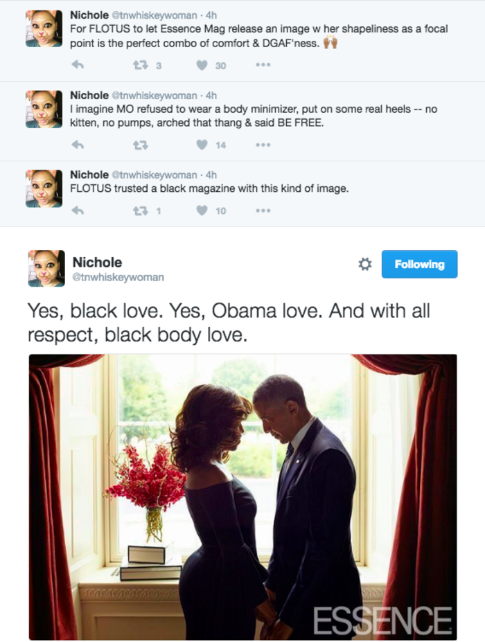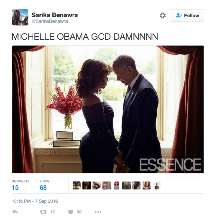 Όπως βλέπετε, Μπάρακ και Μισέλ, κρατιούνται τρυφερά σε μια πανέμορφη εικόνα στην οποία οι γλουτοί της πρώτης κυρίας κλέβουν την παράσταση. Από αρκετούς η Μισέλ χειροκροτήθηκε επειδή θέλησε να προωθήσει τον μαύρο γυναικείο σωματότυπο, ενώ για αρκετούς άλλους οι καμπύλες της θύμισαν αυτές της Kim Kardashian.