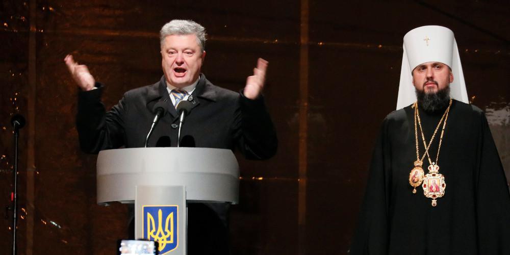 «Η Ουκρανία κόβει τους δεσμούς που την συνδέουν με την Ρωσική Αυτοκρατορία και δεν πρόκειται ποτέ να ξαναγίνει το κανονικό έδαφος της Ρωσικής Ορθόδοξης Εκκλησίας» – τόνισε ο Πρόεδρος της Ουκρανίας Πέτρο Ποροσένκο κατά την ομιλία του στην «Ενωτική Σύνοδο».