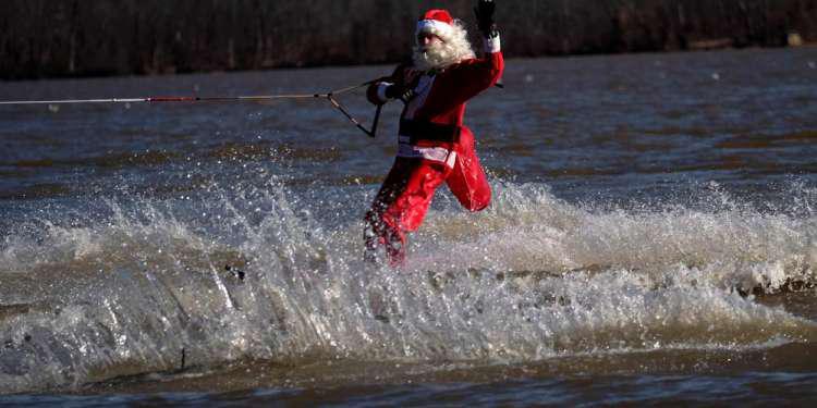Στη θάλασσα πέρασε να Χριστούγεννα και αυτός ο τολμηρός «Άγιος Βασίλης» στη Βιρτζίνια των ΗΠΑ και έκανε θαλάσσιο σκι, ξαφνιάζοντας όσους τον είδαν.
