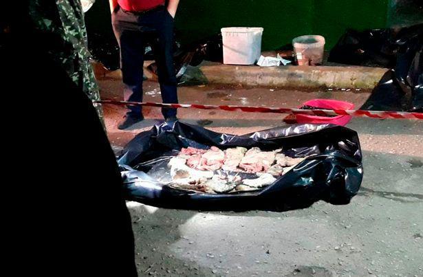 Ωστόσο από τον έλεγχο διαπιστώθηκε πως πρόκειται για άνθρωπο αφού βρέθηκαν παλάμες και πατούσες στις σακούλες. Τελικά διαπιστώθηκε πως η ηλικιωμένη είχε τεμαχίσει σε πάνω από 70 κομμάτια το σώμα του γιους της.