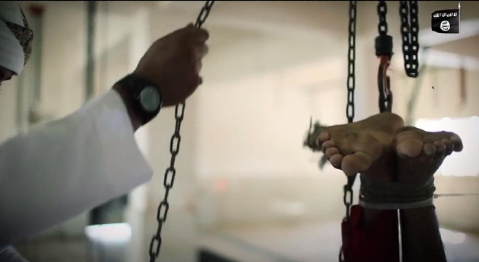 Το Ισλαμικό Κράτος τους οδήγησε σε ένα σφαγείο και τους έσφαξε ως αρνιά. Στη συνέχεια τους κρέμασε από τσιγκέλια.