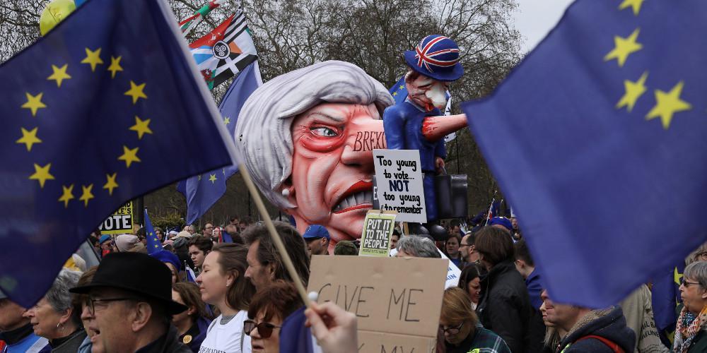 Βρετανοί και αλλοδαποί, μόνιμοι κάτοικοι Βρετανίας, που αντιτίθενται στο Brexit, Ευρωπαίοι πολίτες που ζουν και εργάζονται στη χώρα, άνθρωποι όλων των ηλικιών, βουλευτές όλων των κομμάτων, ο δήμαρχος Λονδίνου Σαντίκ Καν και άλλες προσωπικότητες του δημοσίου βίου διαδήλωσαν για να διατρανώσουν την αντίθεσή τους στο Brexit, λίγες εβδομάδες πριν την προγραμματισμένη αποχώρηση της Μεγάλης Βρετανίας από την ΕΕ, στις 22 Μαΐου.