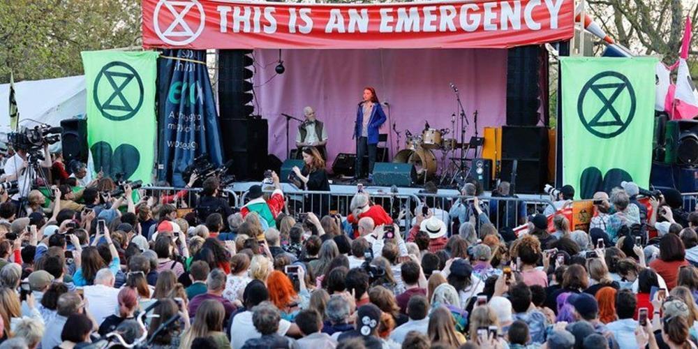 Η δεκαεξάχρονη Τούνμπεργκ απευθύνθηκε σε εκατοντάδες ακτιβιστές στο Marble Arch, ένα από τα ορόσημα του Λονδίνου που έχουν παραλύσει τις τελευταίες επτά ημέρες εξαιτίας των διαδηλώσεων. Η αστυνομία επιτρέπει η κινητοποίηση εκεί να συνεχιστεί.