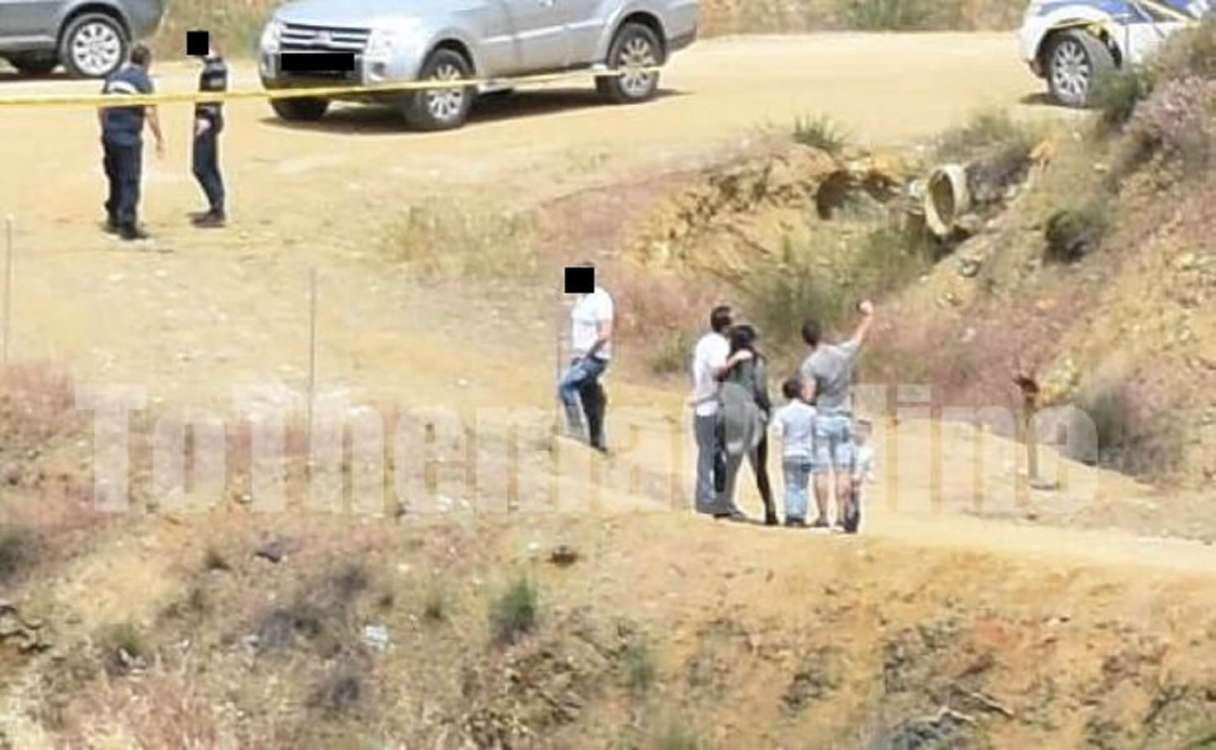 Εκεί, η οικογένεια, με τα παιδιά τους, εισήλθαν εντός της σκηνής του εγκλήματος για να φωτογραφηθούν.