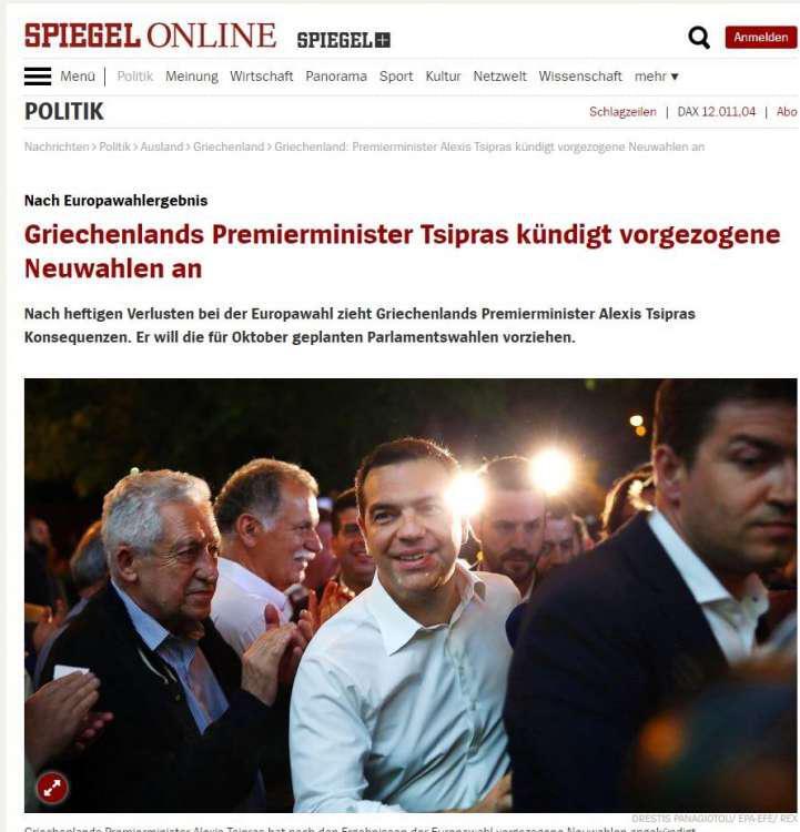 Την ίδια στιγμή το Spiegel τιτλοφορούταν με το «ο Έλληνας Πρωθυπουργός ανακοίνωσε πρόωρες εκλογές»