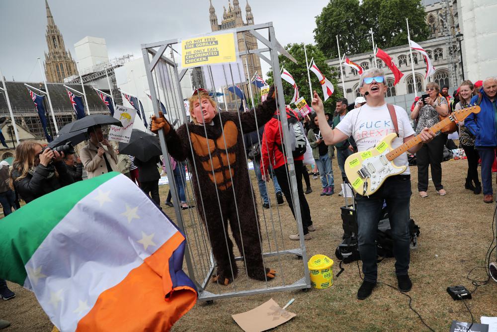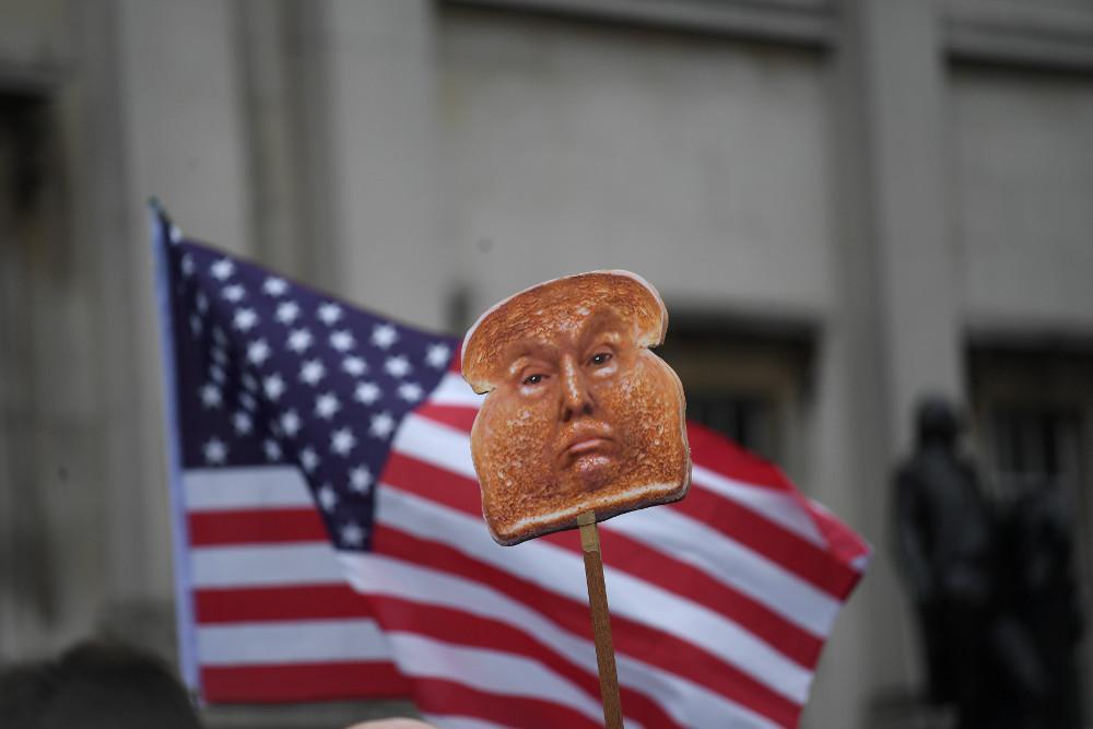 Παράλληλα ακτιβιστές έχουν ξεχυθεί στους δρόμους του Λονδίνου και μοιράζουν χαρτί υγείας με το πρόσωπο του Τραμπ.