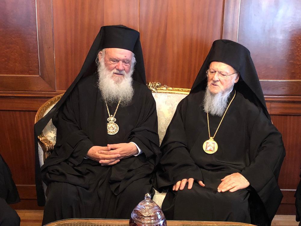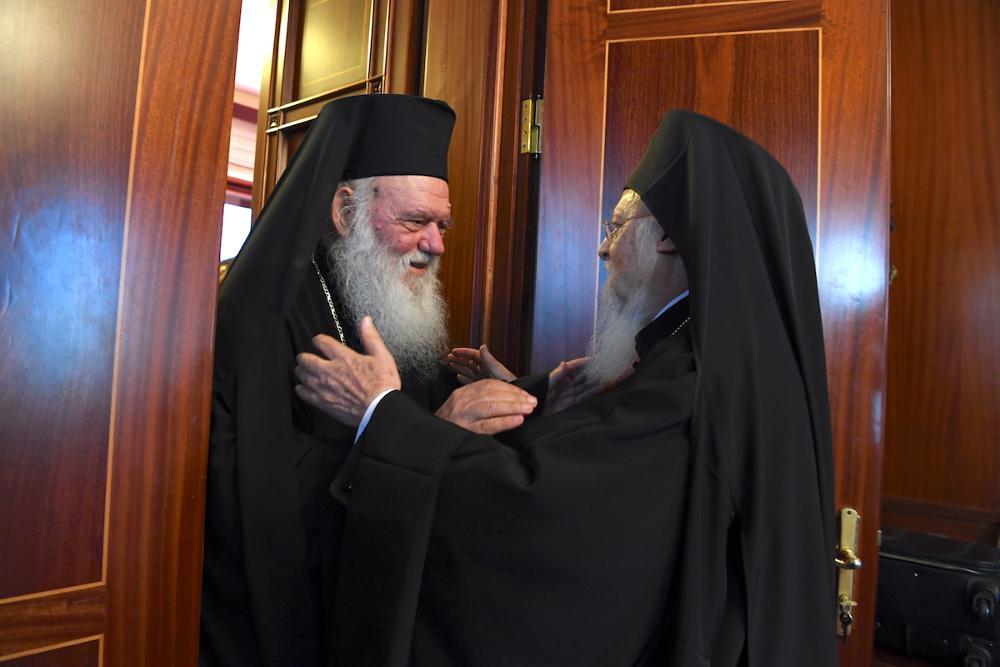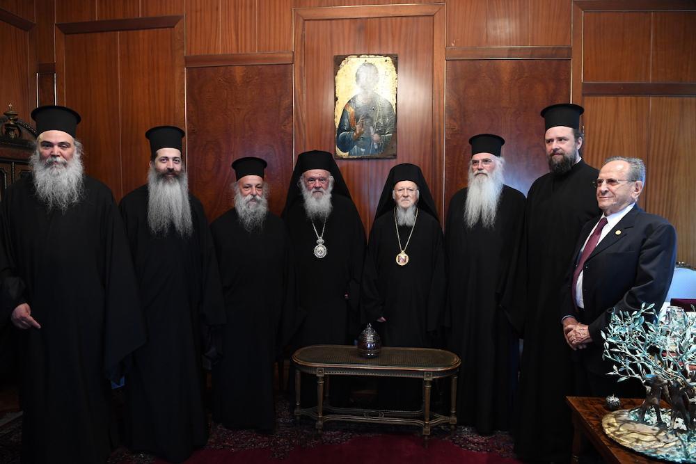 Ο Αρχιεπίσκοπος Ιερώνυμος, που συνοδευόταν από τους Μητροπολίτες Μεσογαίας και Λαυρεωτικής Νικόλαο και Γρεβενών Δαβίδ, τον Πρωτοσύγκελλό του, Επίσκοπο Θεσπιών Συμεών, τον Αρχιγραμματέα της Ιεράς Συνόδου της Εκκλησίας της Ελλάδος, Αρχιμ.Φιλόθεο Θεοχάρη, και τον Πρόεδρο της Αδελφότητος των Οφφικιάλων του Οικουμενικού Πατριαρχείου, “Παναγία Παμμακάριστος”, Άρχοντα Ορφανοτρόφο Γεράσιμο Φωκά, έγινε δεκτός με εγκαρδιότητα από τον Οικουμενικό Πατριάρχη Βαρθολομαίο.