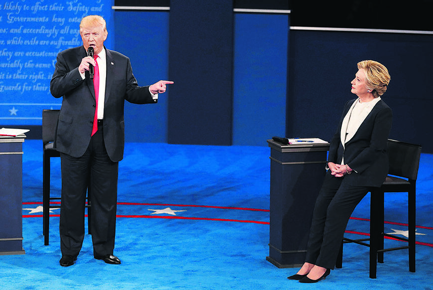 Η 90λεπτη δημόσια αντιπαράθεση ξεκίνησε στη σκιά του σκανδάλου με τα σεξιστικά σχόλια που είχε κάνει ο Τραμπ το 2005 και πλέον απειλούν να εκτροχιάσουν την υποψηφιότητά του. Λίγο πριν αρχίσει το ντιμπέιτ, ο μεγιστάνας των ακινήτων -που ζήτησε συγγνώμη μετά τη δημοσιοποίηση ενός παλαιότερου βίντεο όπου μιλάει χυδαία για τις γυναίκες- πέρασε με ευκολία από την άμυνα στην επίθεση. Μιάμιση ώρα πριν από την τηλεμαχία, βρέθηκε στο ίδιο πάνελ με 4 γυναίκες που κατηγορούν το ζεύγος Κλίντον για το… αμαρτωλό όπως ισχυρίζονται παρελθόν τους. Ο ίδιος ο Τραμπ επιτέθηκε με τη σειρά του στην αντίπαλό του για τα πάντα, από τις εξωσυζυγικές περιπέτειες του συζύγου της και τους δεσμούς της με τη Ουόλ Στριτ μέχρι τις αποφάσεις της στην εξωτερική πολιτική. Εφθασε μάλιστα στο σημείο να την αποκαλέσει «διάβολο», απειλώντας την ότι αν εκλεγεί σκοπεύει να την κλείσει φυλακή για την υπόθεση των e-mail…