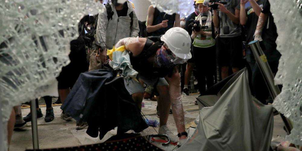 Διαδηλωτές που αντιτίθεται στην προσκείμενη στο Πεκίνο κυβέρνηση του Χονγκ Κονγκ μπήκαν στην αίθουσα του τοπικού κοινοβουλίου, αφού προηγουμένως έσπασαν τον αστυνομικό κλοιό, και ύψωσαν εκεί μια σημαία της βρετανικής αποικιοκρατικής περιόδου, ανήμερα της 22ης επετείου από την ένωση του νησιού με την Κίνα.