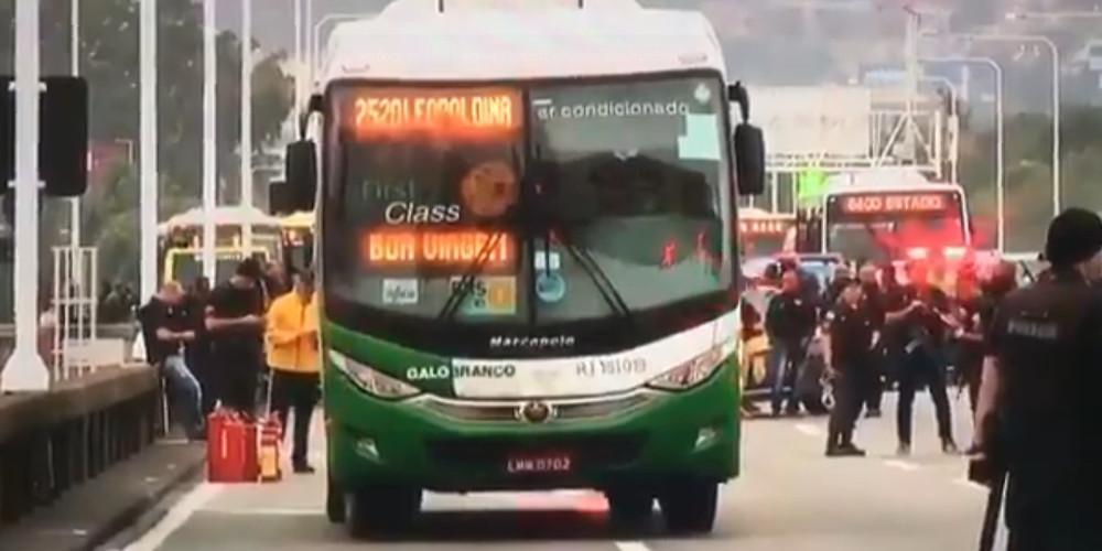Η κυκλοφορία των αυτοκινήτων στη γέφυρα που συνδέει το Ρίο με τη γειτονική πόλη Νιτερόι, η οποία είναι πολύ πολυσύχναστη αυτή την ώρα του πρωινού, έχει σταματήσει.