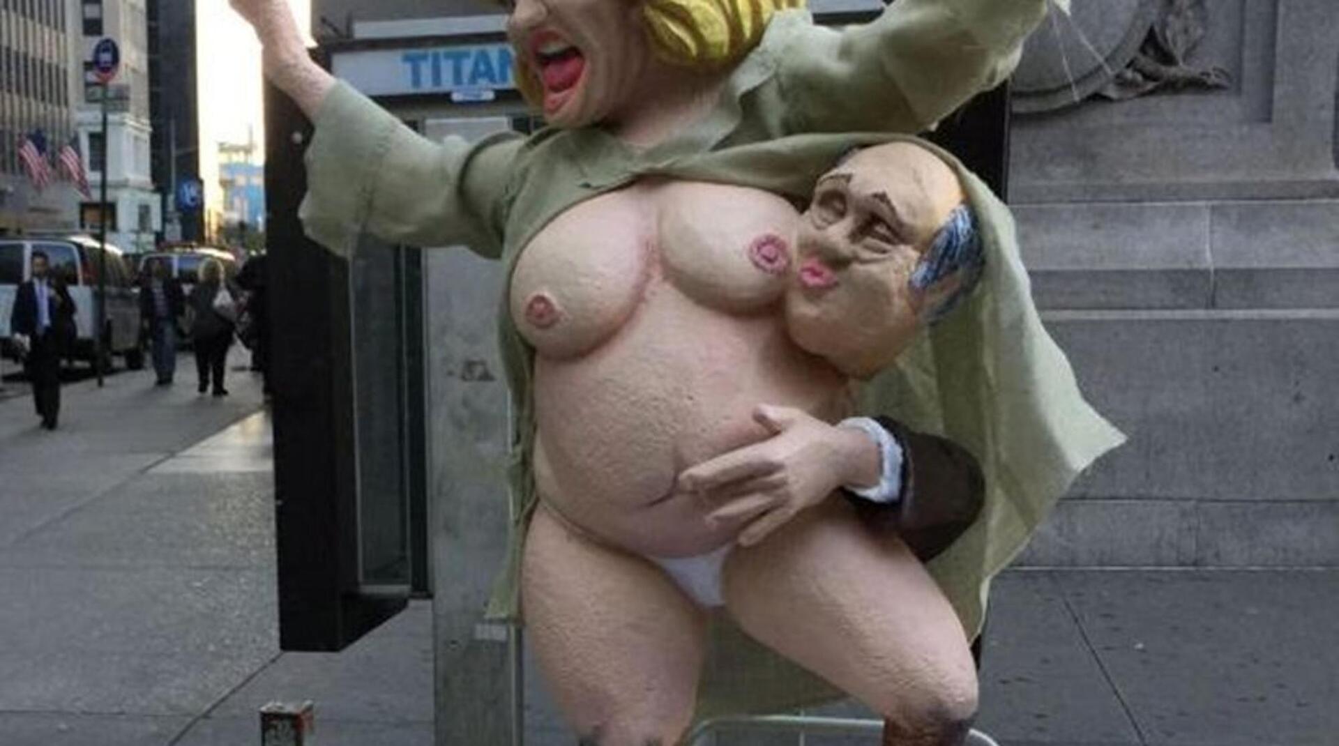 Μια γυναίκα εκνευρισμένη από την προσβολή για την Χίλαρι Κλίντον όρμηξε στο άγαλμα, σπάζοντας μεγάλα κομμάτια και διαπληκτίστηκε έντονα τόσο με τον δημιουργό του όσο και με έναν υποστηρικτή του Τραμπ, που προσπάθησαν να την εμποδίσουν.