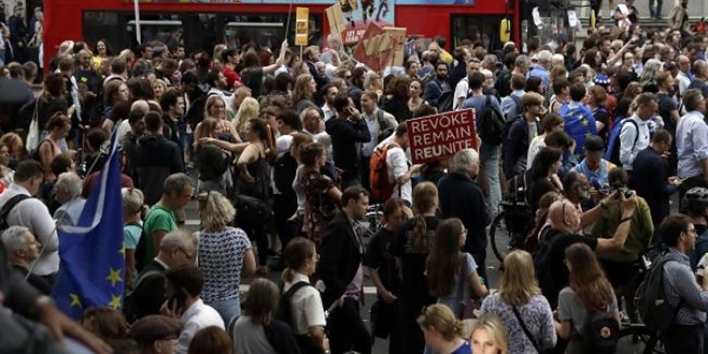 Συνθήματα όπως «Ντροπή σας» και «Σταματήστε το πραξικόπημα» ακούστηκαν έξω από το κοινοβούλιο, όπου συγκεντρώθηκαν το απόγευμα περίπου 200 διαδηλωτές, κοντά στις όχθες του Τάμεση, για να εκφράσουν τη δυσαρέσκειά τους. Μια διαδήλωση κατά του Τζόνσον οργάνωσε και στο κεντρικό Εδιμβούργο το Ευρωπαϊκό Κίνημα στη Σκωτία.