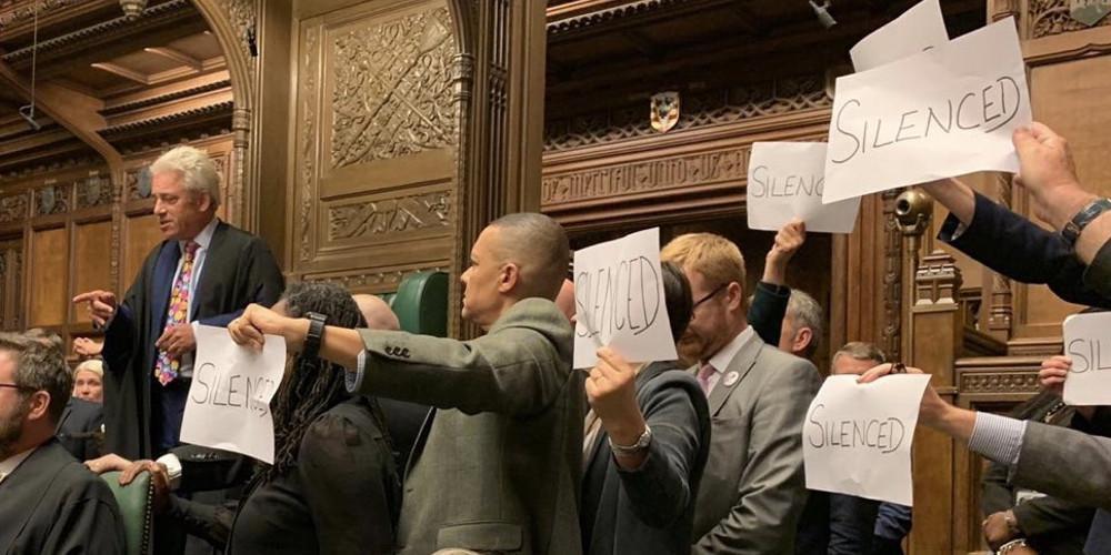 Οι βουλευτές της αντιπολίτευσης διαμαρτυρήθηκαν έντονα στον πρόεδρο της Βουλής, Τζον Μπέρκοου για την αναστολή των εργασιών του κοινοβουλίου της επόμενες πέντε εβδομάδες και κρατούσαν κάρτες με την λέξη: «silenced (σ.σ. τον σώπασαν)». Αρκετοί βουλευτές είχαν έντονες αντιδράσεις κοντά στην θέση του προέδρου, τον οποίο προσπάθησαν να αποτρέψουν να φύγει και να συνεχίσει την διαδικασία αναστολής στην Βουλή των Λόρδων.