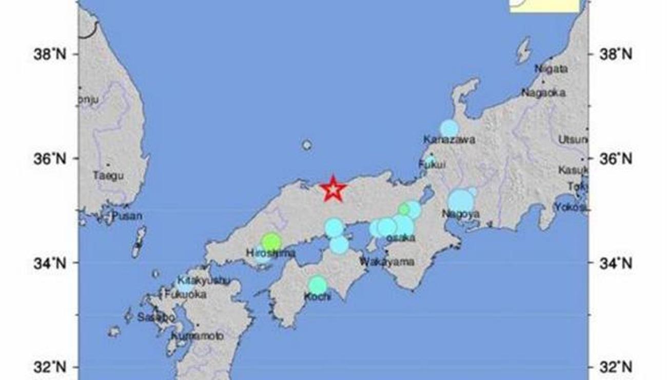 Δεν υπάρχει κίνδυνος για τσουνάμι, σύμφωνα με τα πρώτα στοιχεία , από τη δόνηση που προήλθε από βάθος 10 χιλιομέτρων και σημειώθηκε λίγο μετά τις 14.00 τοπική ώρα (08.00 Ελλάδος) στην περιφέρεια του Τοτόρι.