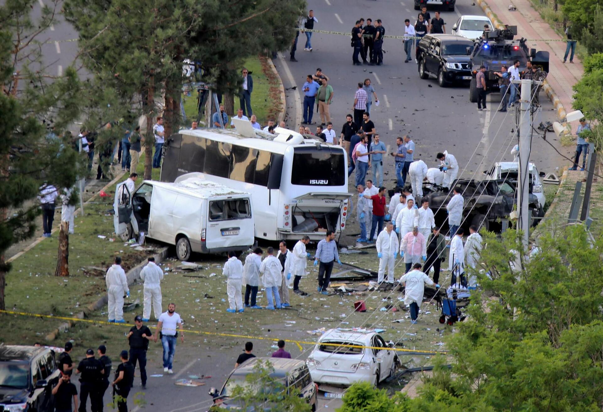 κοντά σε θωρακισμένο όχημα της αστυνομίας στην πόλη Ντιγιάρμπακιρ της νοτιοανατολικής Τουρκίας, προκαλώντας χάος στο κέντρο της, σύμφωνα με το γραφείο του κυβερνήτη, πηγές στις τουρκικές υπηρεσίες ασφαλείας και τουρκικά ΜΜΕ.