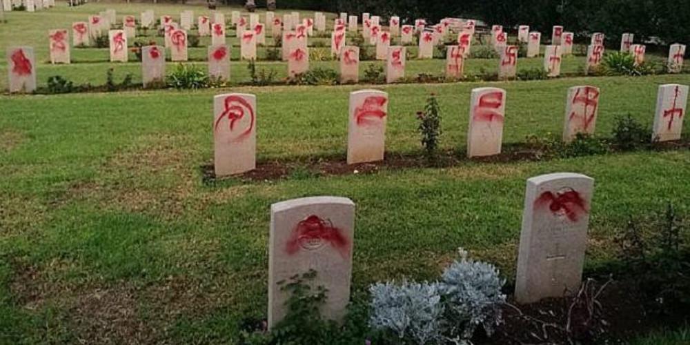 Φωτογραφικά στιγμιότυπα εικονίζουν τουλάχιστον τριάντα επιτύμβιες πλάκες οι οποίες υπέστησαν βανδαλισμό, με κόκκινη μπογιά· σε ορισμένες από αυτές ζωγραφίστηκαν σβάστικες.