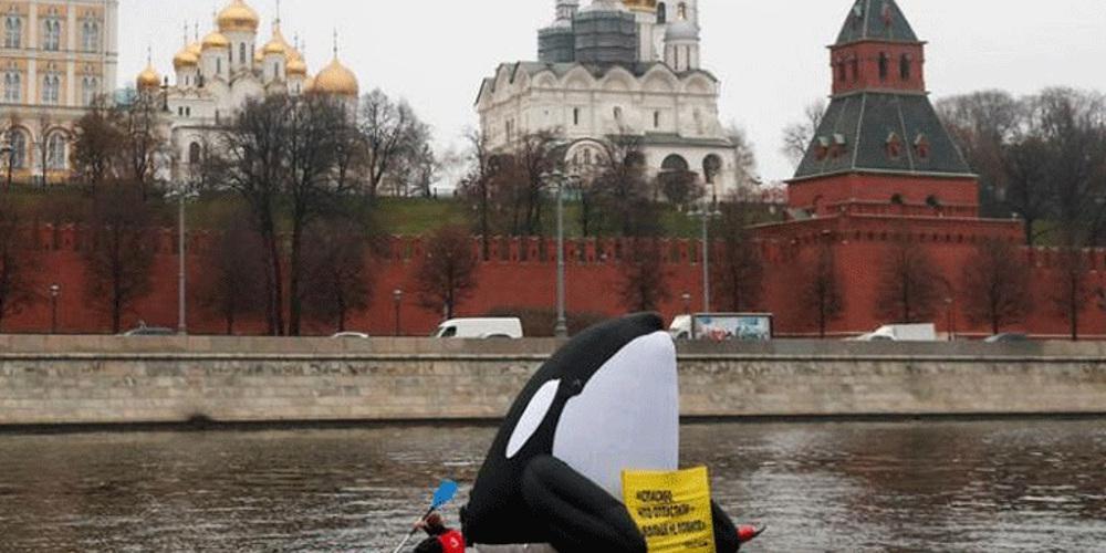 Τη Δευτέρα, ακτιβιστές διαδήλωσαν στον ποταμό έχοντας μαζί τους τη φουσκωτή όρκα, στην οποία είχαν κρεμάσει ένα πανό με το σύνθημα: «Σας ευχαριστούμε που μας αφήνετε να φύγουμε, μην μας αιχμαλωτίζετε πλέον».